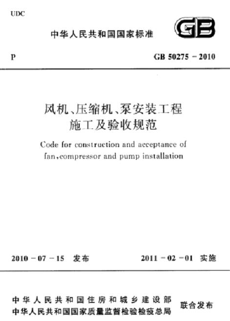 GB50275-2010 《風(fēng)機、壓縮機、泵安裝工程 施工及驗收規(guī)范》