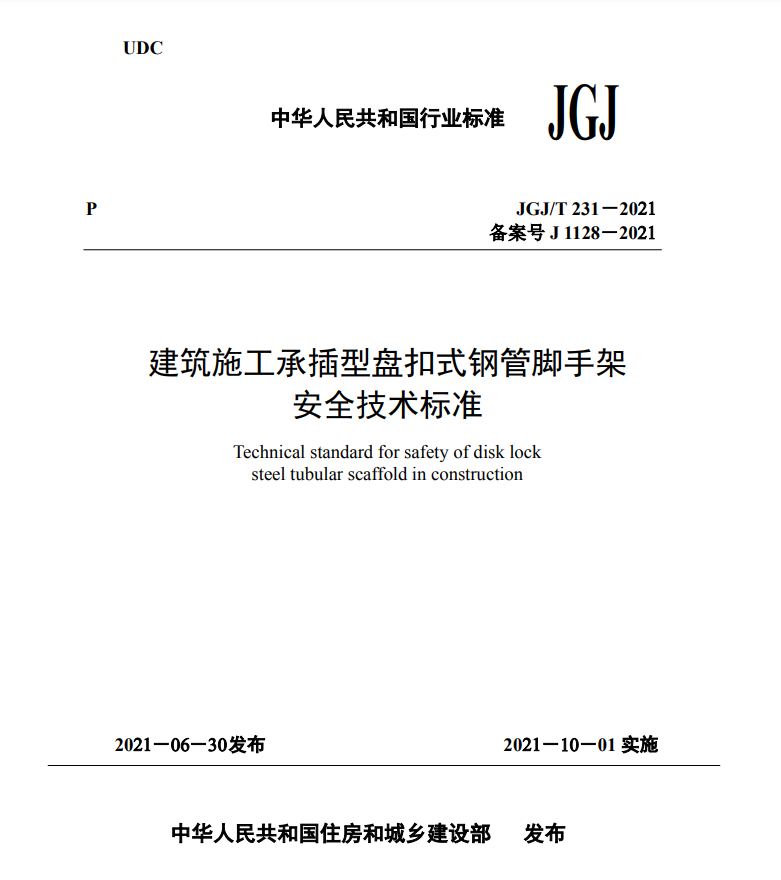 本標(biāo)準(zhǔn)適用于建筑與是政工程中承插型盤扣式鋼管腳手架的設(shè)計(jì)、安裝與拆除、使用和管理。
