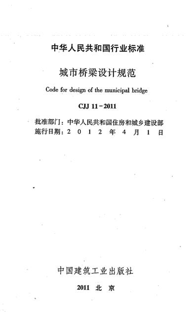 本規(guī)范適用于城市道路上新建永久性橋梁和地下通道的設(shè)計,適用于城(鄉(xiāng))村道路上新建永久性橋梁和地下通道的設(shè)計。