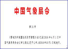在國家全面深化改革的新形勢下,作為國務(wù)院直屬事業(yè)單位的中國氣象局在2016年出臺(tái)了《雷電防護(hù)裝置檢測資質(zhì)管理辦法》(中國氣象局令第31號)。
